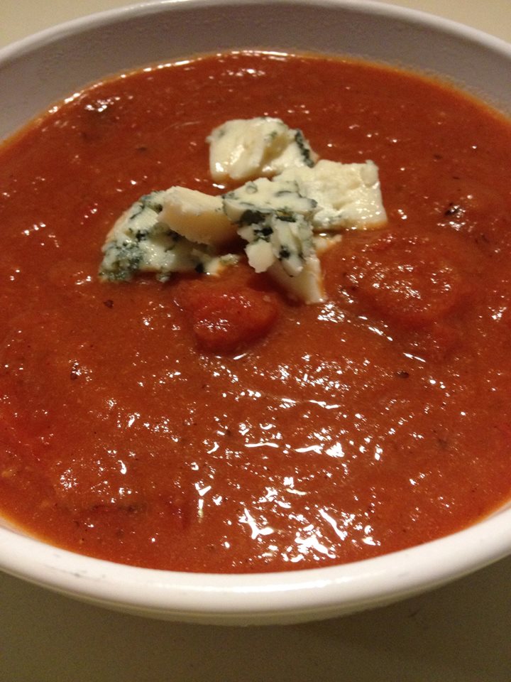 In a Crockpot or saucepan add all ingredients except the half and half. I put my Crockpot on High for 2 hours and it was perfect, but If you want to simmer it longer, put it on low for 4 hours. If using a saucepan, simmer on low for as long as you want the flavors to combine, the longer the better! However, you can eat this right when heated through and it’s still delicious! In the last 15 minutes add the half and half and stir. Season with additional salt and pepper if needed. Garnish with blue cheese and some smokey bacon to really jazz it up!
