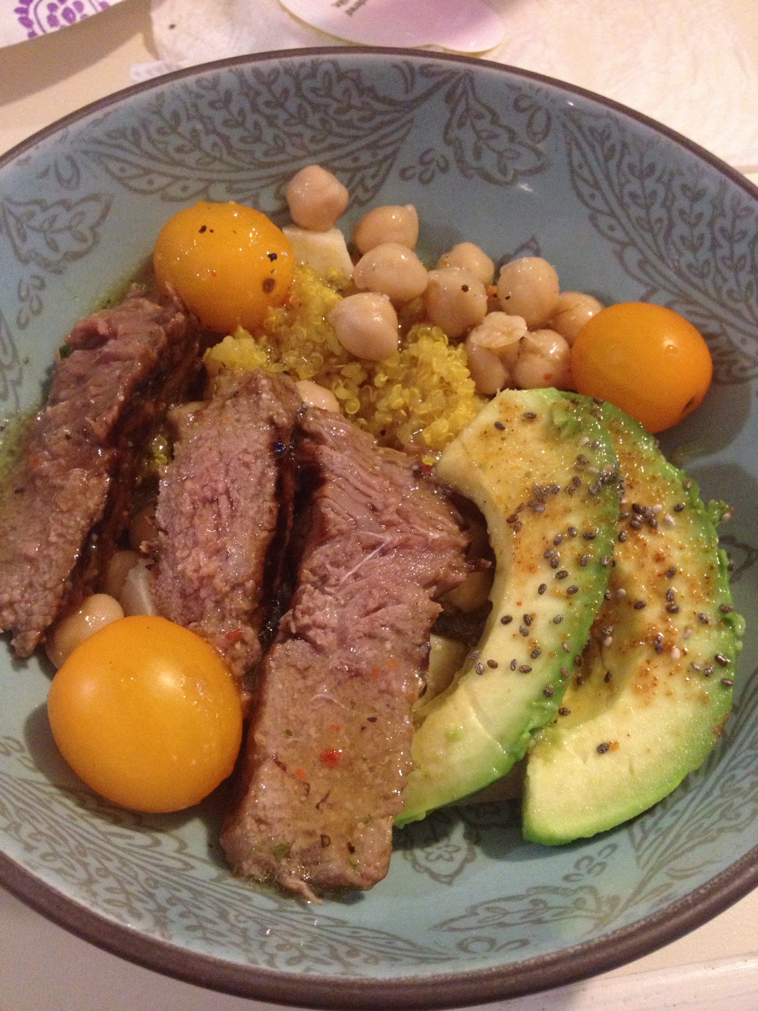 My 3 year-old Gio, eating his protein bowl with avocado, tomatoes, chickpeas and steak.