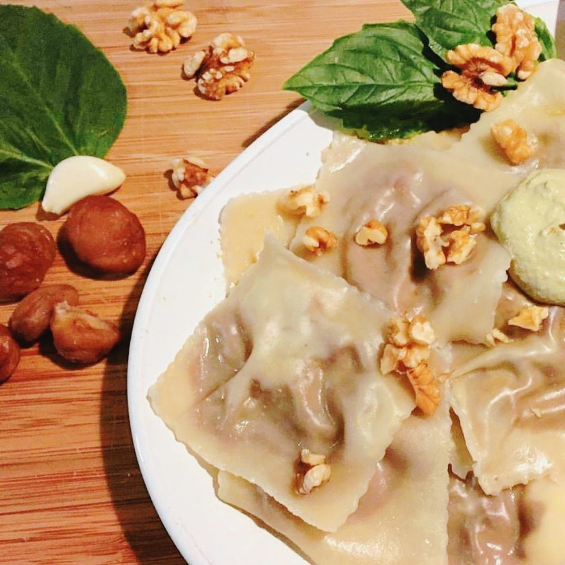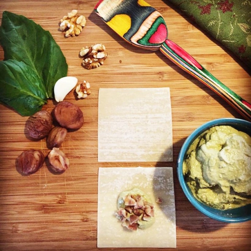 Chestnut and Maple Walnut Basil “Cream”-Filled Raviolis