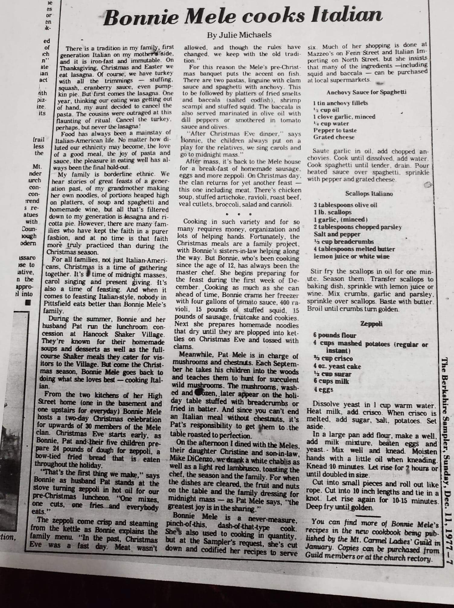 My Grandmother, Bonnie Mele, who just turned 90, is still implementing this tradition today! She was featured twice in the Berkshire Eagle (local newspaper in Massachusetts) in the 60’s and 70’s for upholding this tradition. I think she is due for another feature!