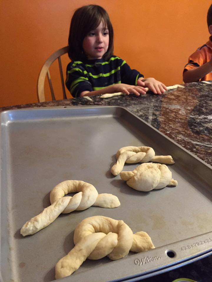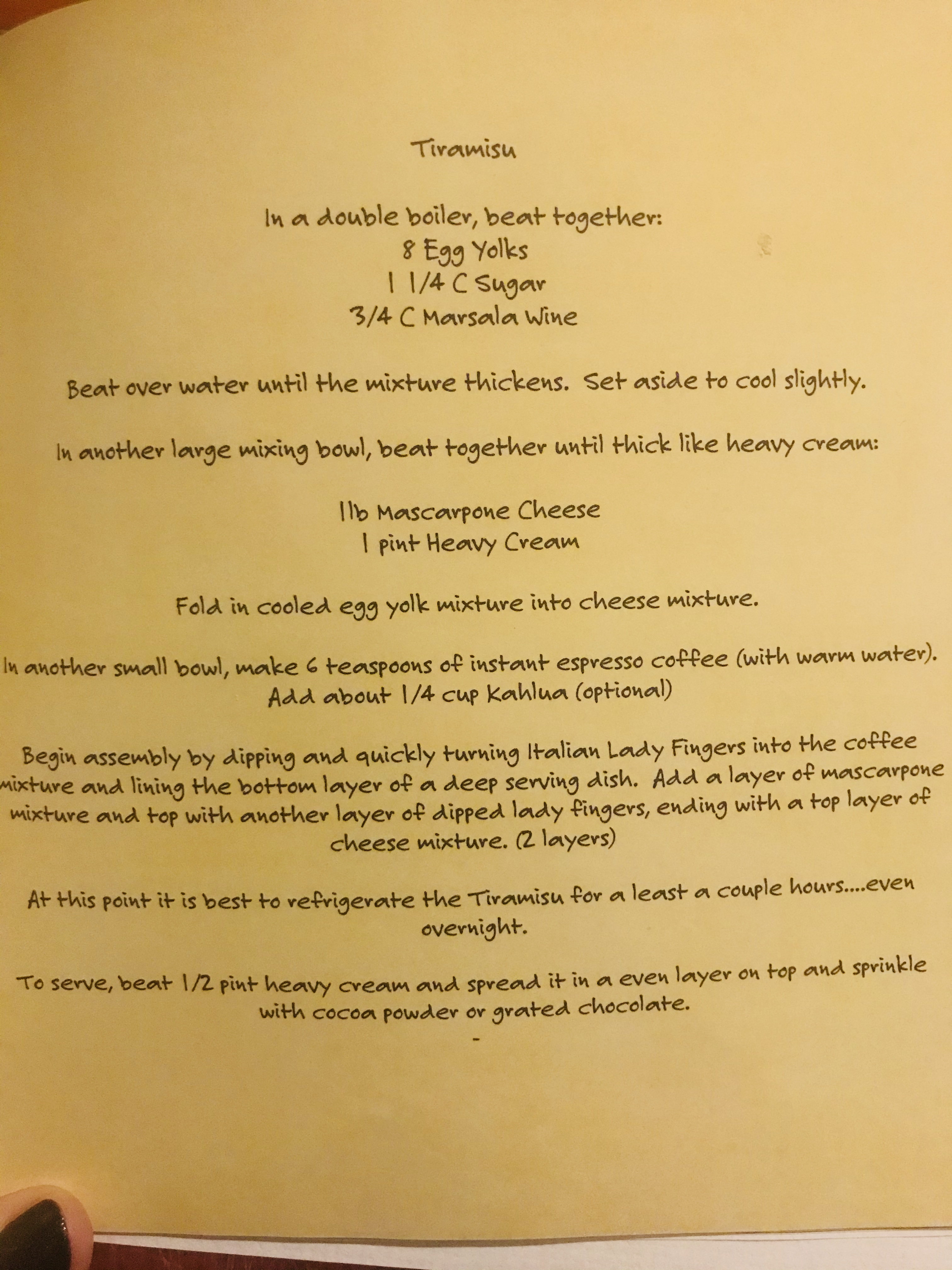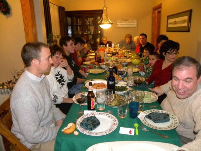 After dinner we have dessert of course, but this occurs while singing Christmas carols from our vintage carol books! Here’s a peak from a few years ago, but I see the fish still on the table. I guess we weren’t ready for dessert quite yet! Dessert always consists of a “Baby Jesus Cake” which the kids help make and sing Happy Birthday to Baby Jesus. Tiramisu, Italian cookies, Terrone, Sfogliatelle, strufoli, and chestnuts are some of what you will find on the dessert table!