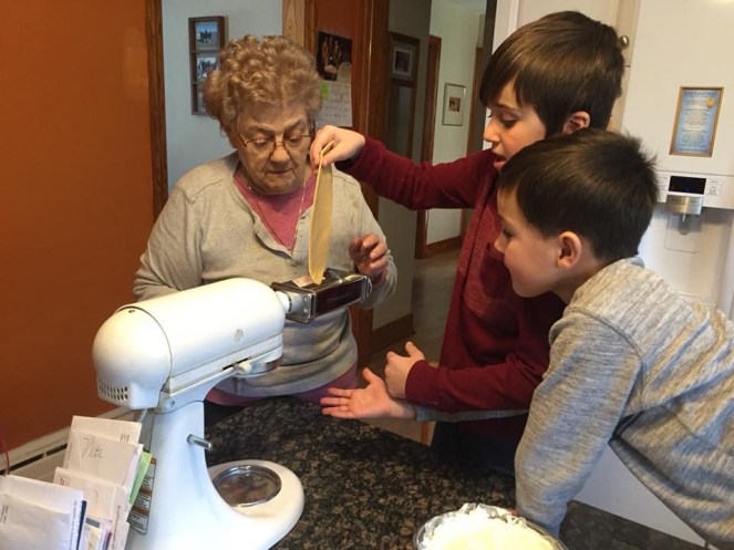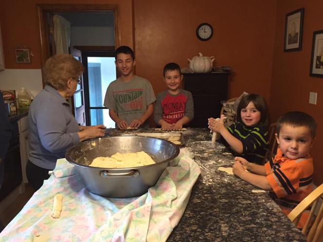 This woman is incredible and is such a treasure; she still bakes Italian cookies by the hundreds for church, family, and friends, plays pitch, and is a bocce champion in her league at the Italian American Club! All the while continuing to instill her Christian family values, as well as preserving the cultural traditions we hold so near and dear to our hearts. Just look at her teaching the kids to make homemade pasta, gnocchi and zeppoli!