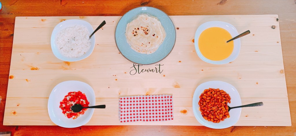 Our family loves Chipotle burritos, and in my typical last-minute fashion, decided to whip up a Burrito Board with what I had on hand. I would have liked to add my amazing guacamole, but my last avocado was bad. 🙁 I also only had lemons instead of limes, so I improvised. I also made my own tortillas for the first time, and now I will never buy store bought! Let me know what you think if you try out this fun Burrito of the Board idea! Need a table-sized Family Meal Board? Check them out HERE!