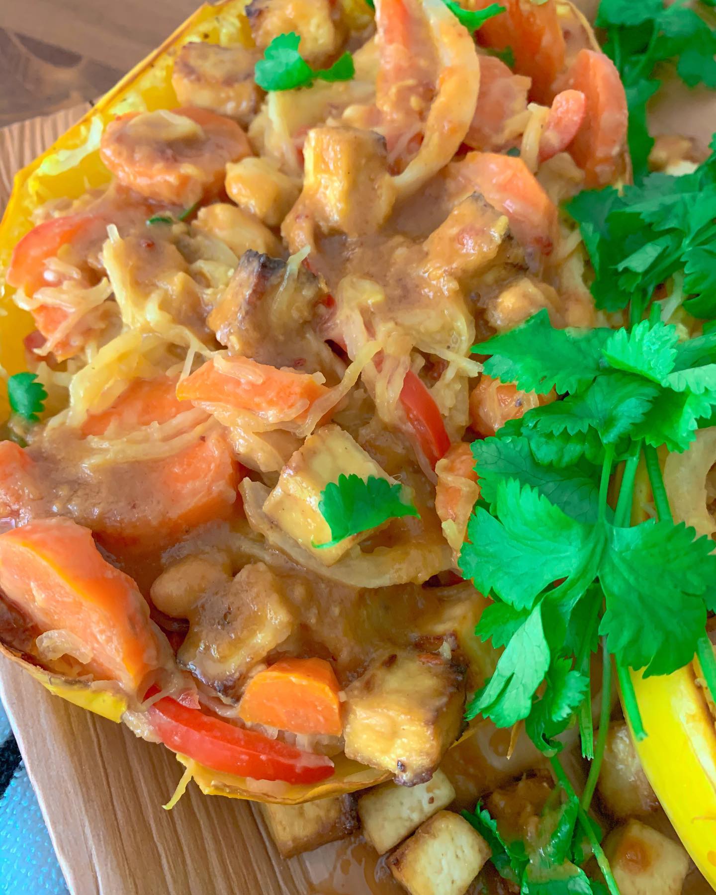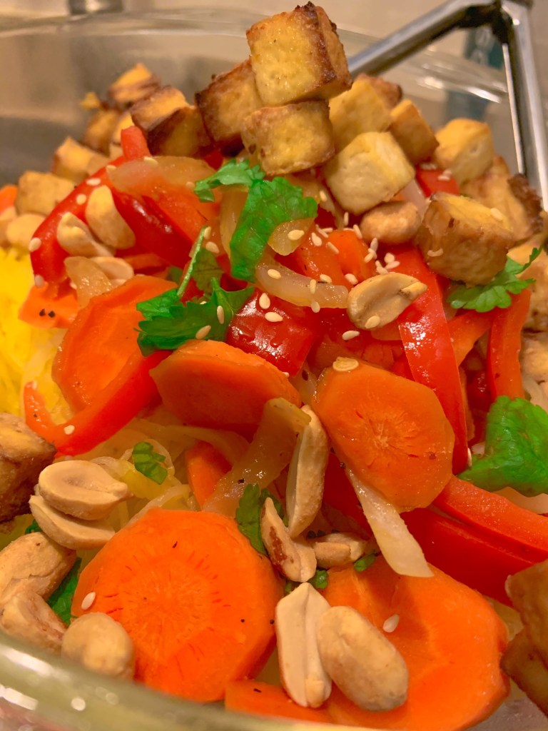 Airfryer Spaghetti Squash Pad Thai with Crispy Tofu