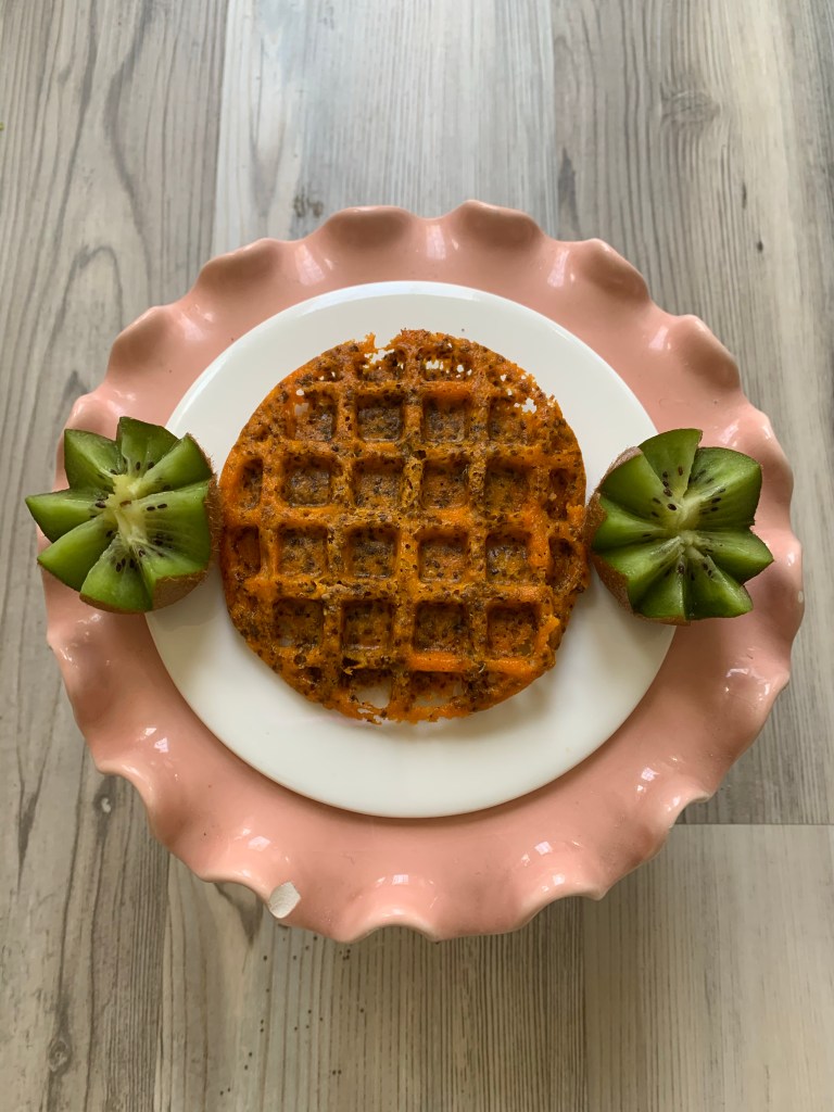 Soak Chia Seeds in 3 TBS water for 5 minutes. Mix all ingredients together. Spoon into a 1/4 cup measuring cup, and transfer to waffle maker. Cool for about 4-5 minutes to your desired crispiness.