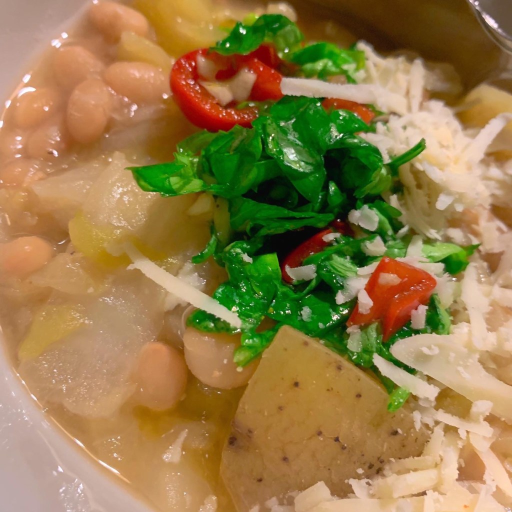 Select Instant Pot® SAUTÉ function; heat oil. Add onion, garlic, salt and pepper. Cook 2-3 minutes until fragrant. Add beans, water, and Better than Boullion. Twist lid to seal. Select MANUAL function and set timer for 30 minutes. Carefully use quick release to depressurize. Add potatoes, cabbage and rosemary. Twist lid to seal. Select MANUAL function and set timer for 10 minutes. Allow pressure to release.
