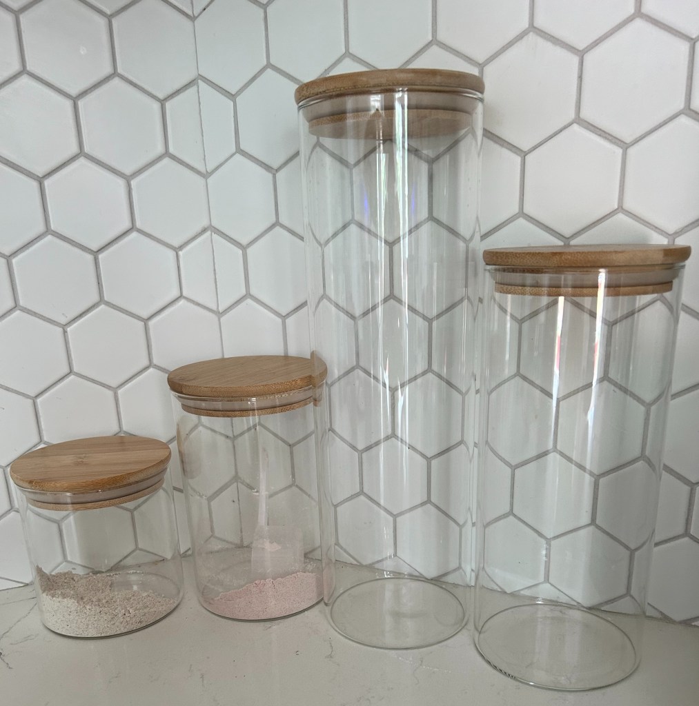 4. These glass canisters are great for different flour, protein powders, pasta, and I’ve even used them for sourdough starter!