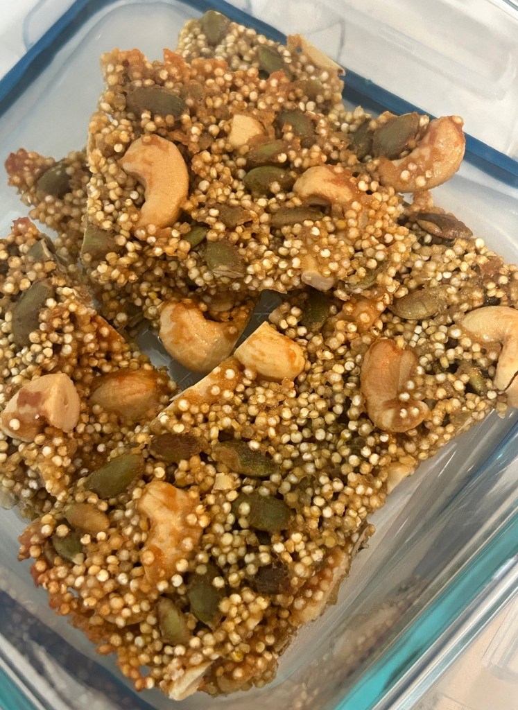 This is such a delicious and nutritious granola bar/nut brittle recipe. It’s versatile as all of my recipes are! I made it last night with only quinoa and no oats. I used raw cashew and pumpkin seeds, no chia. It was absolutely delicious!