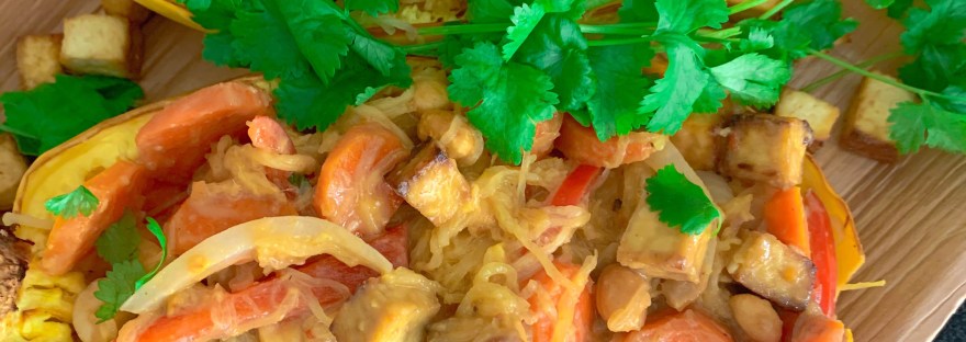 Airfryer Spahgetti Squash is so easy! Just cut it in half, scoop out seeds, add little salt, pepper, spray or drizzle of oil if you choose, and airfry at 370 for 20 minutes--DONE! You can top it with anything. How about my Vegan meatballs for a really healthy rendition of the traditional dish! In this… Continue reading Airfryer Spaghetti Squash Pad Thai with Crispy Tofu